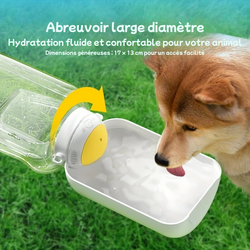 Ultra portable, avec poignée de transport, elle vous suit partout pour garder votre chien bien hydraté et rassasié.