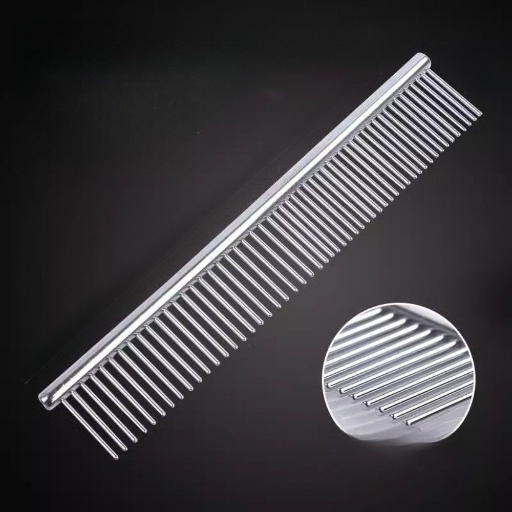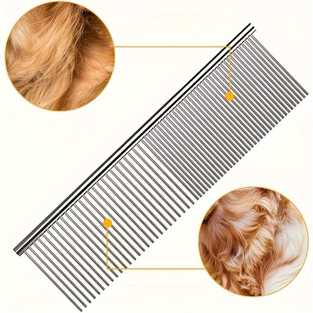 Peigne long en acier, double densité pour chiens à poils longs. Démêle et enlève les poils morts en douceur.