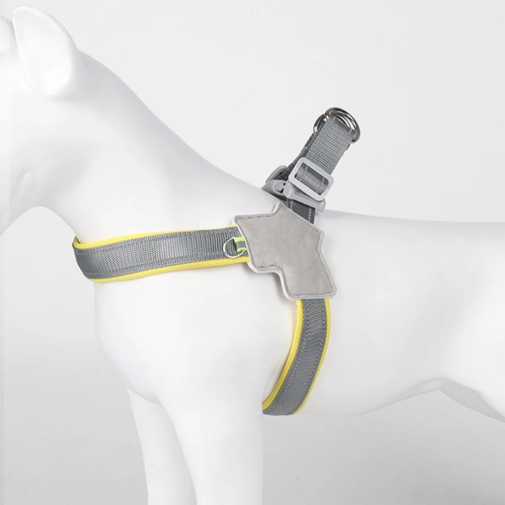 Le harnais arbore une structure fine en nylon doux avec rembourrage intérieur discret.