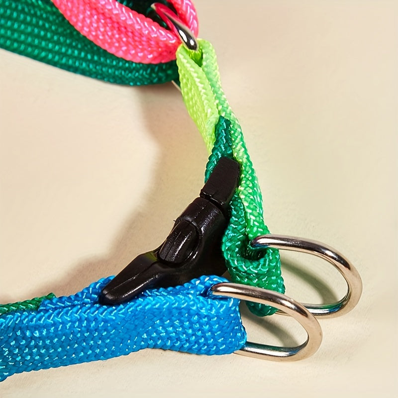 Ce harnais pour chat multicolore attire tous les regards tout en offrant un maintien sûr.