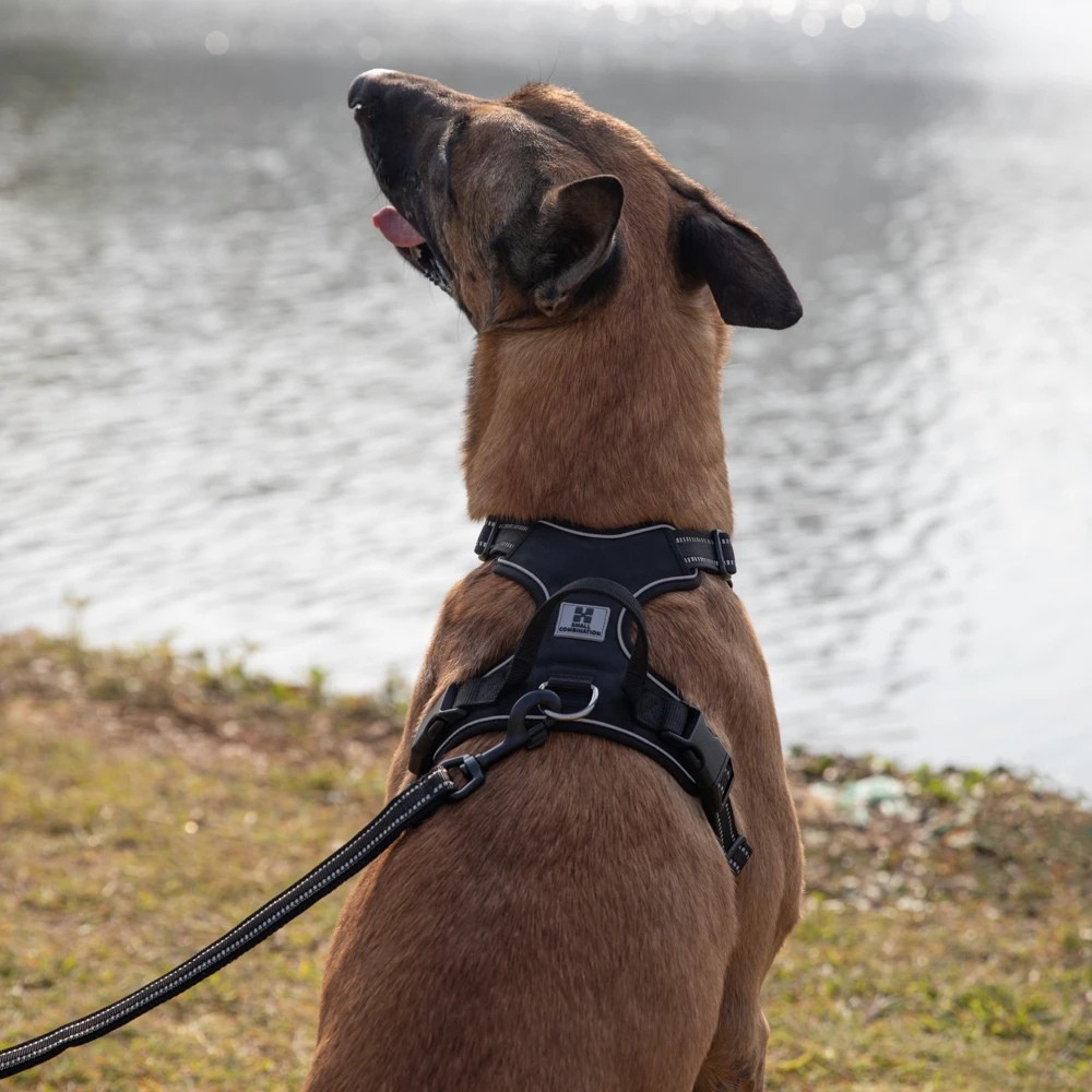 Avec sa forme en gilet enveloppant, ce harnais épouse parfaitement la silhouette canine.