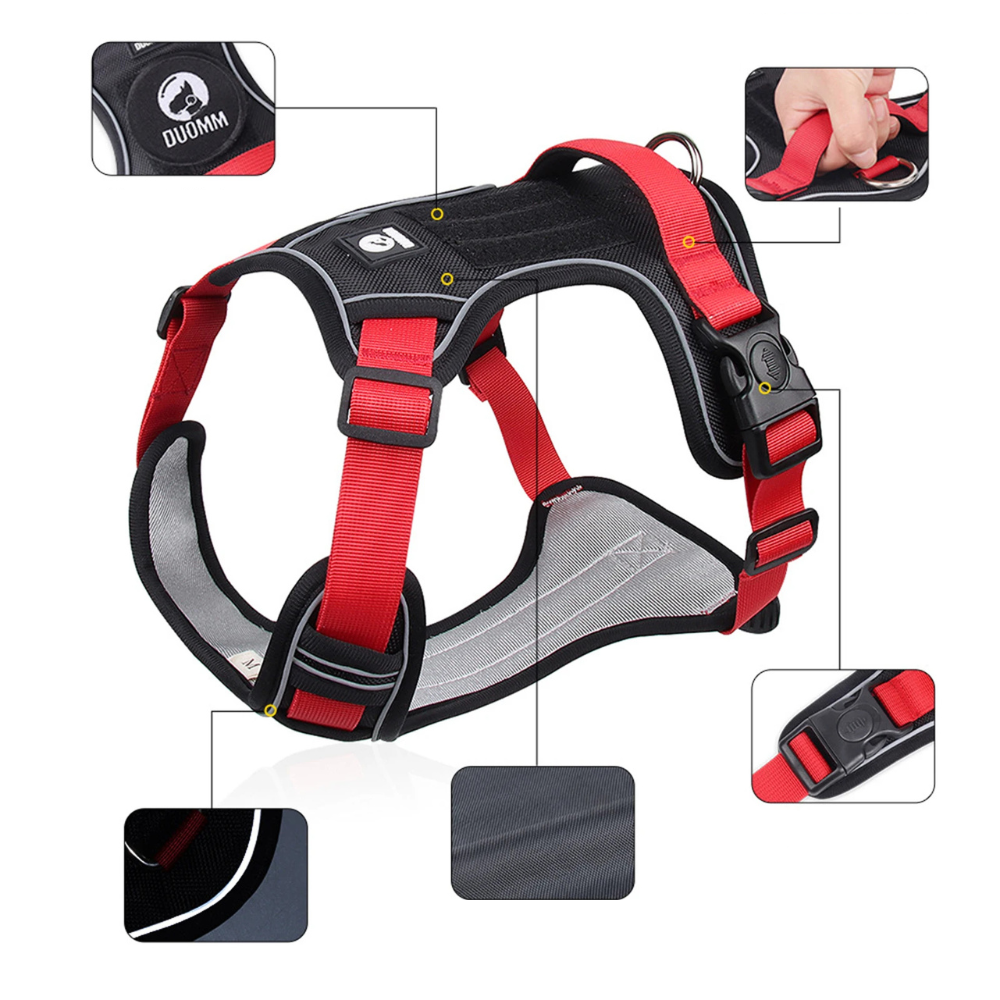 Adoptez le harnais pour chien ultra-confort en tissu Oxford renforcé, idéal pour toutes les races. Sa coupe gilet assure sécurité, maintien et visibilité pour vos balades.