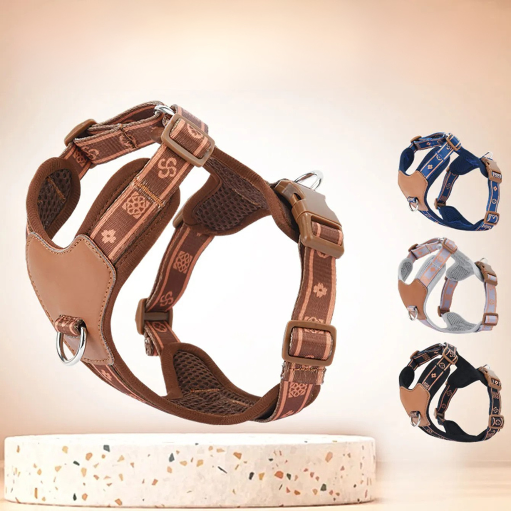 Pensé pour les chiens puissants ou vifs, ce harnais anti-traction offre à la fois maintien ferme et style raffiné.