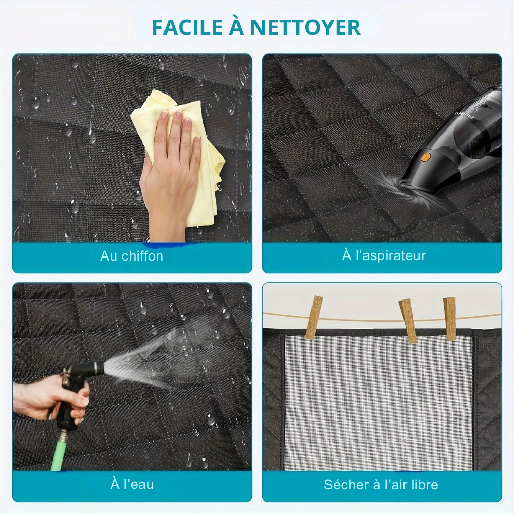 Protégez votre voiture avec cette housse imperméable et antidérapante pour chien. Fenêtre maille, poches et clips ajustables inclus. Idéale pour SUV, camionnettes et berlines.