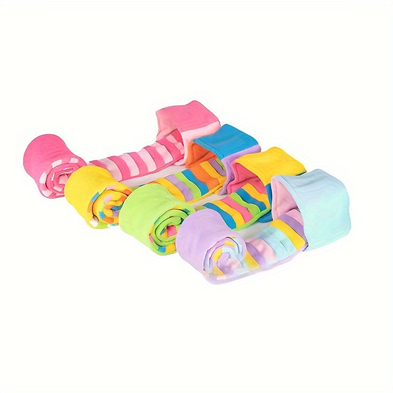 Avec ses bandes colorées et douces, ce tapis en polaire offre une expérience tactile captivante.