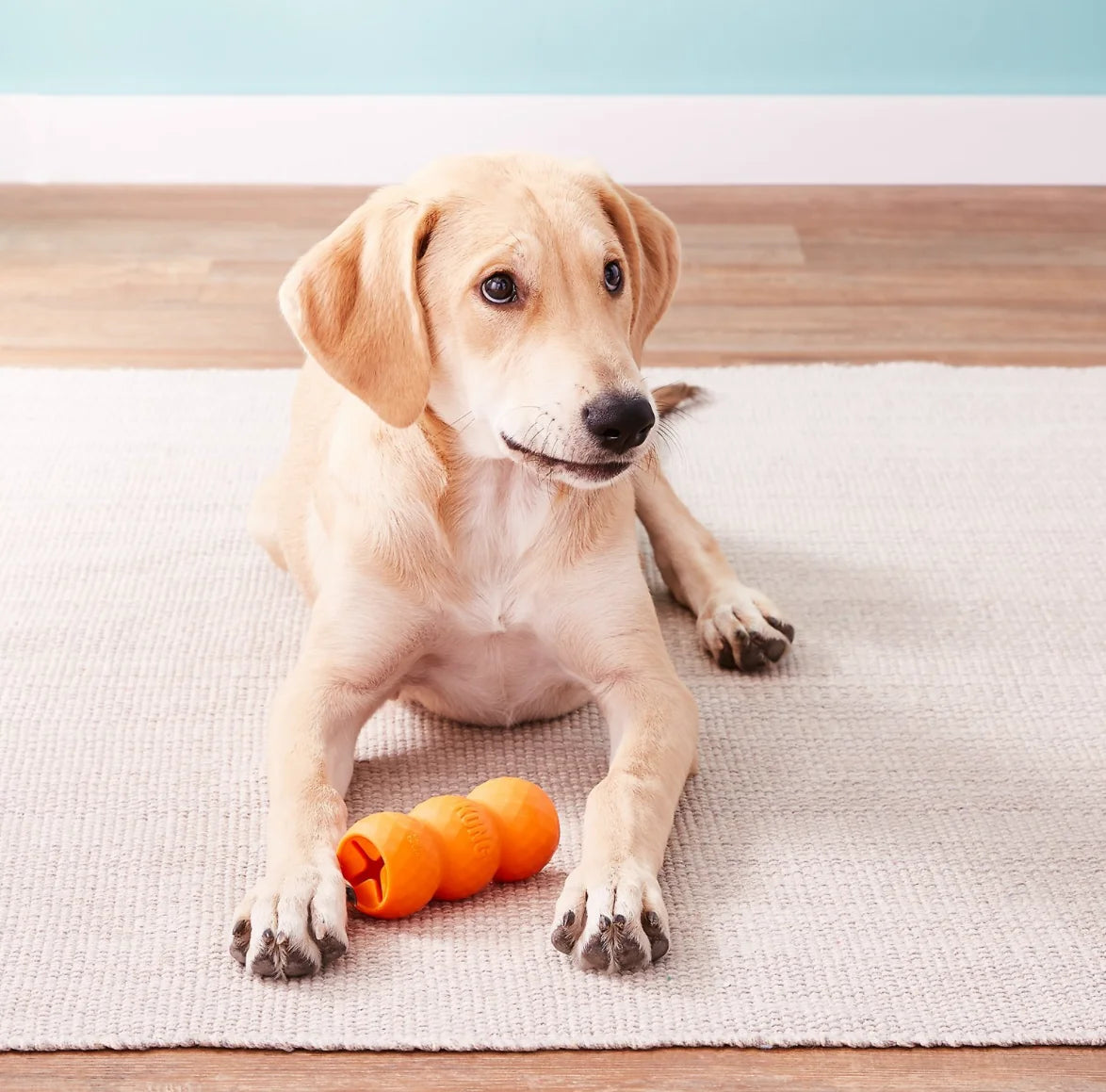 Le KONG en caoutchouc texturé stimule la curiosité canine. Un jouet intéractif, parfait contre l’ennui et l’anxiété de séparation.
