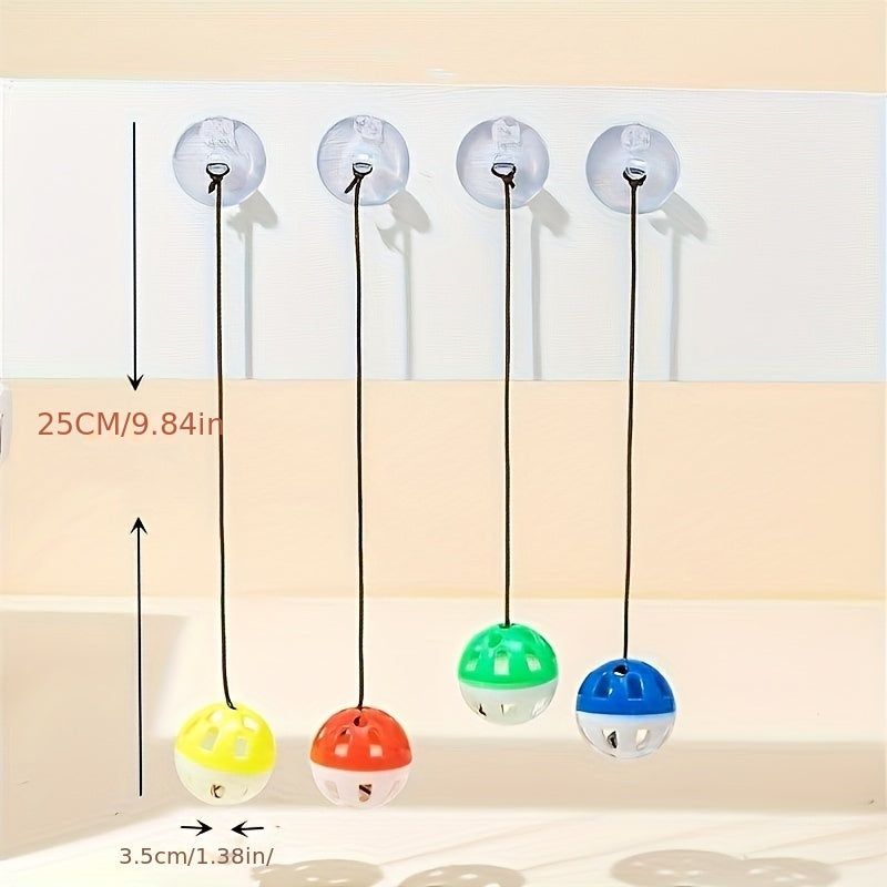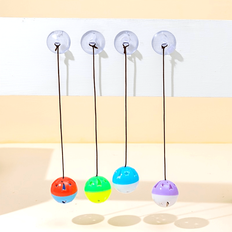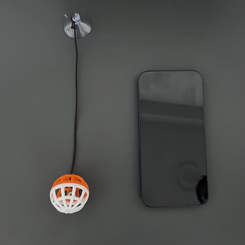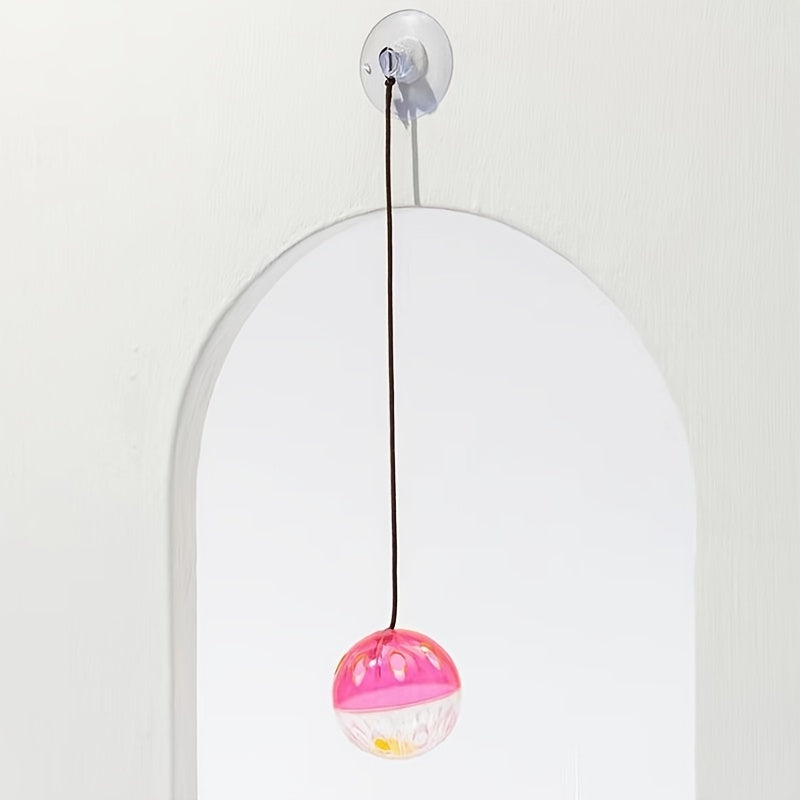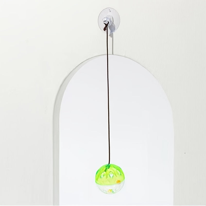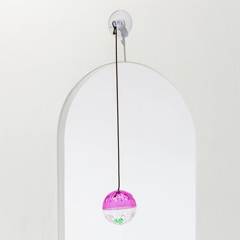 Offrez à votre chat un jouet suspendu en plastique avec boule sonore, à fixer par ventouse, pour éveiller son instinct de chasseur et le divertir au quotidien.