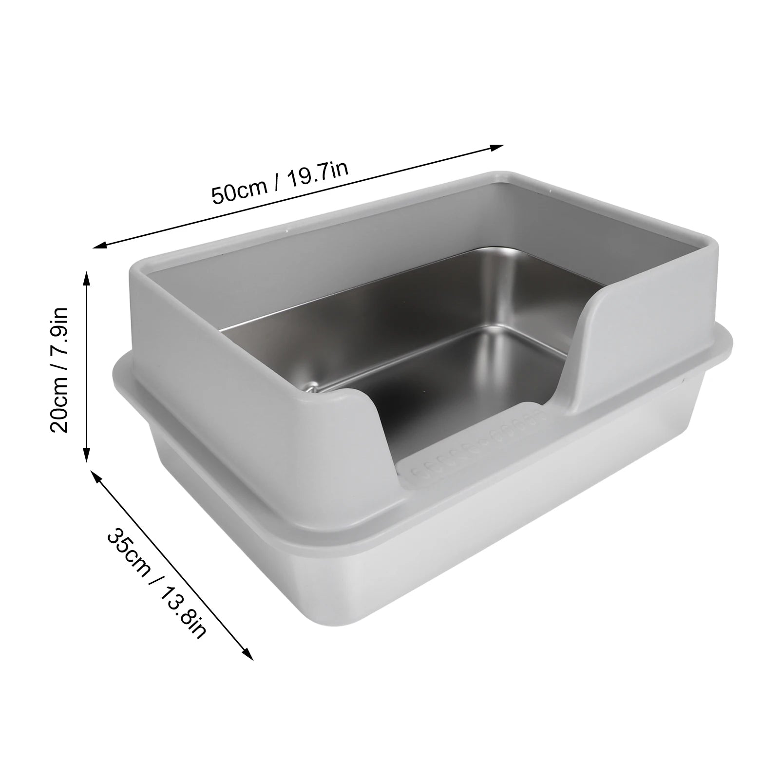 Cette litière en acier inoxydable est conçue avec des rebords hauts semi-fermés pour éviter les projections et garder le sol propre. Durable, résistante aux rayures et aux odeurs, elle est facile à nettoyer et adaptée aux chats de petite à moyenne taille ainsi qu’à d’autres petits animaux.
