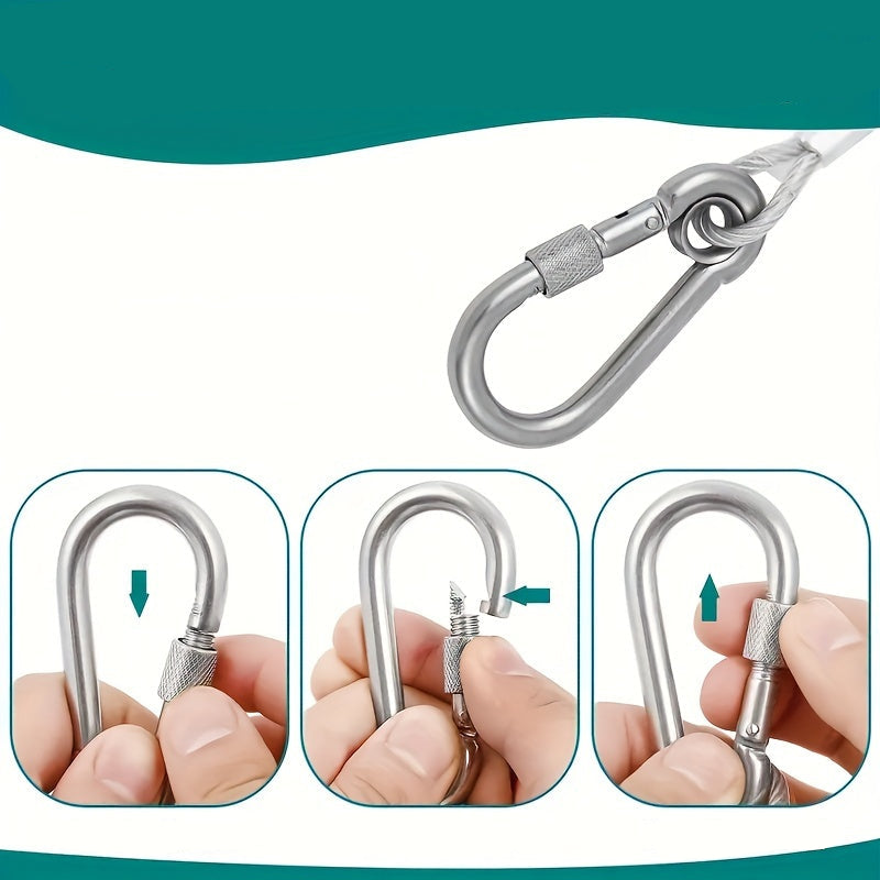 - Matière : Acier inoxydable gainé + mousquetons métalliques haute résistance
