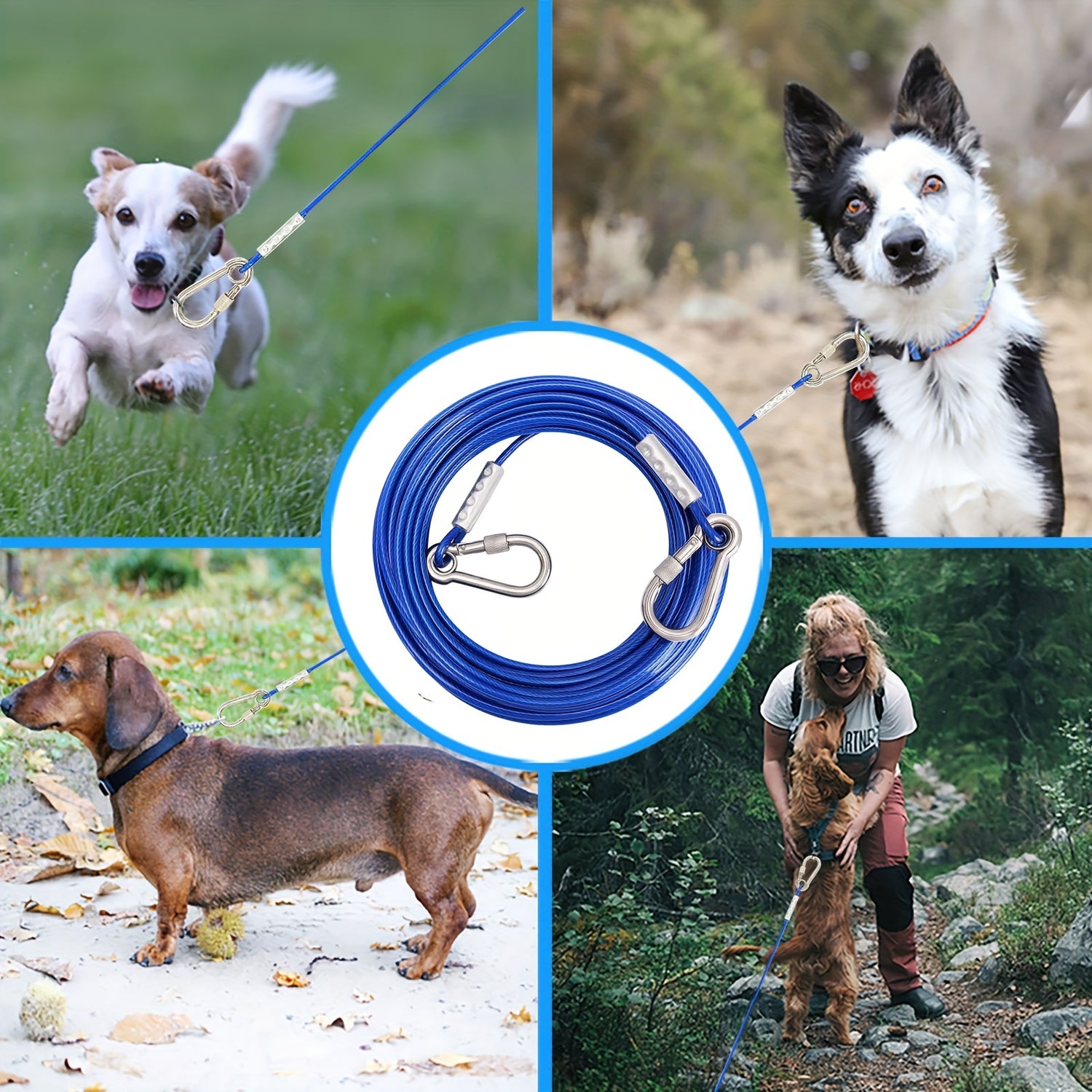 Cette longe pour chien ultra résistante en acier inoxydable supporte jusqu’à 250 lb de traction. Parfaite pour sécuriser votre chien en extérieur sur de grandes distances.