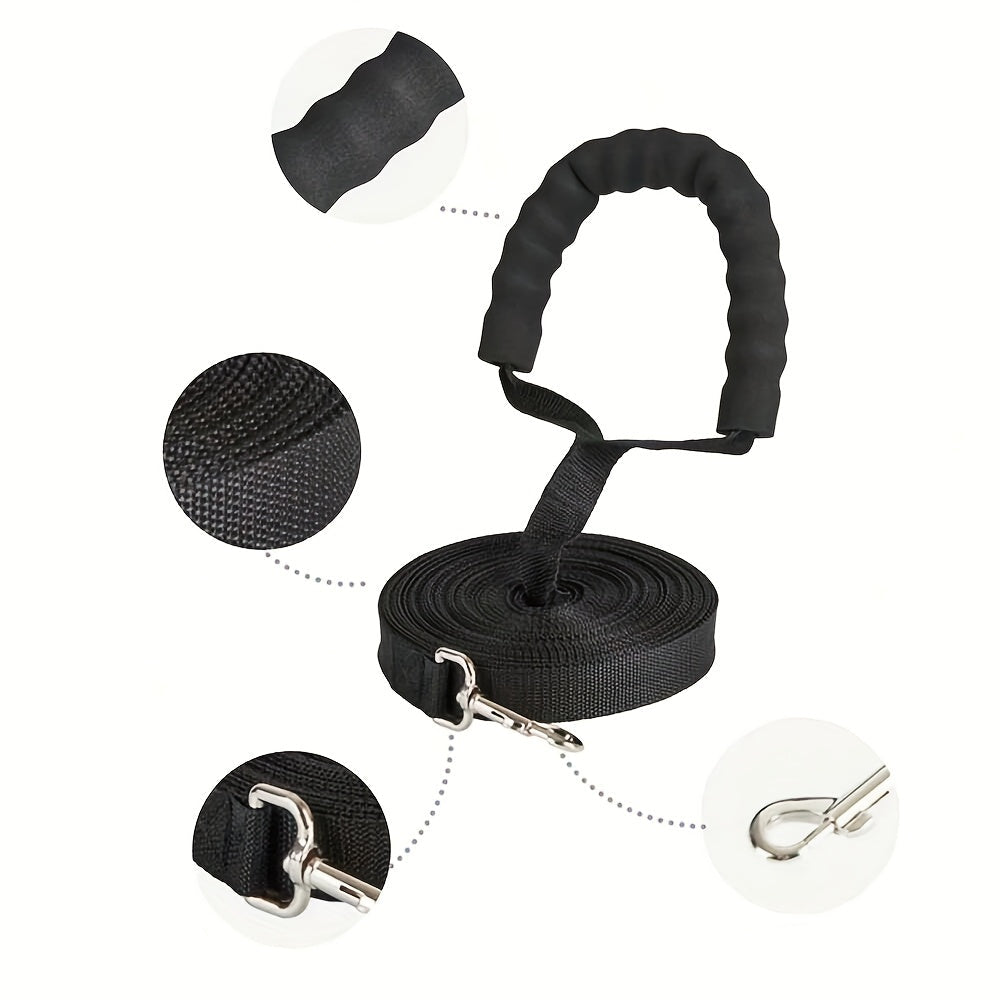 Longe Noire avec Poignée Mousse pour Chien – 1,5 m à 20 m