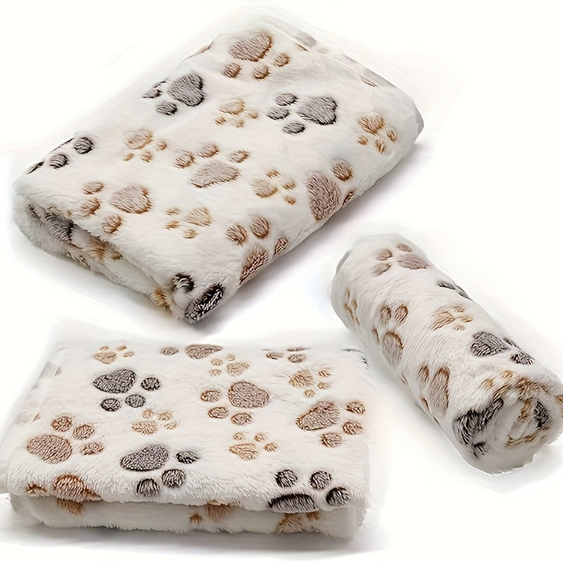 Lot de 3 couvertures en flanelle douce, imprimées de jolies empreintes de pattes dans des tons naturels. Parfaites pour protéger et réchauffer votre animal au fil des saisons. Faciles à entretenir.