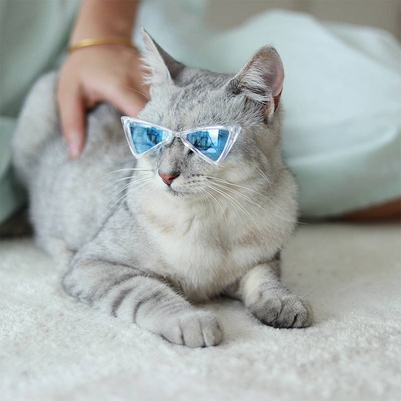 Des lunettes au design triangulaire pour chats et petits chiens, parfaites pour les photos tendances et les sorties stylées en extérieur.