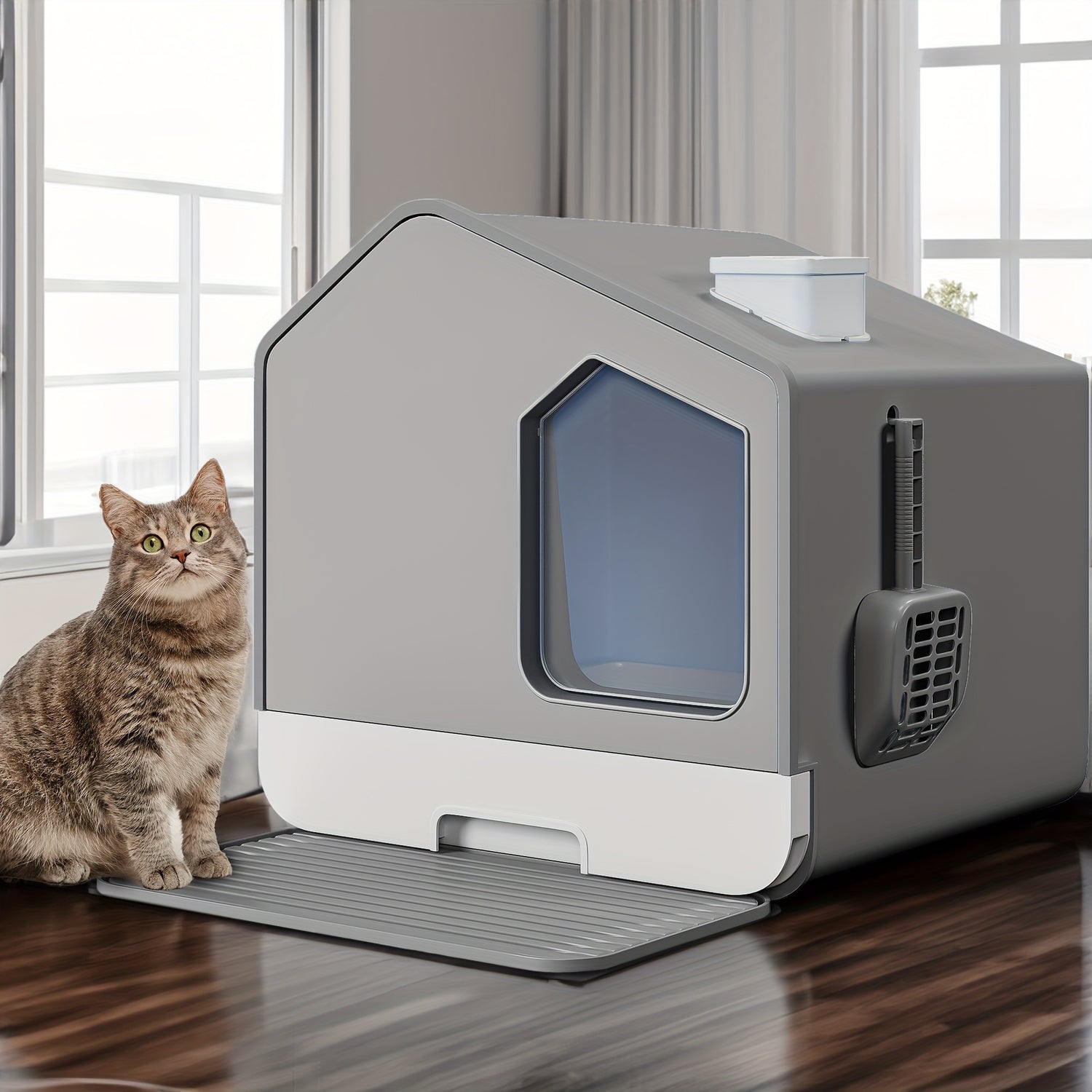 Cette maison de toilette fermée offre intimité à votre chat et contrôle les odeurs.