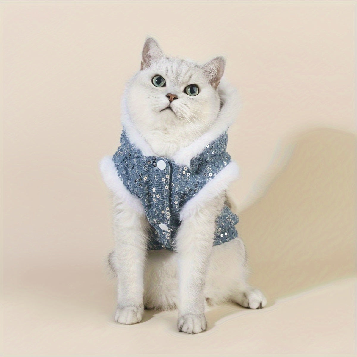 Un manteau chaud et pailleté pour chat ou petit chien, conçu pour briller tout en offrant une douce chaleur pendant les saisons froides.