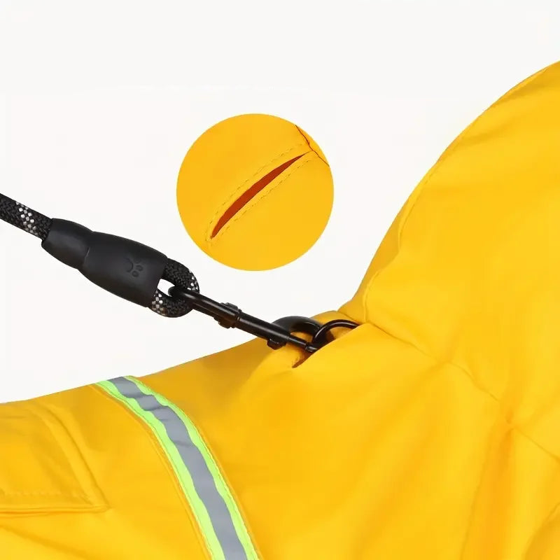 Protégez votre chien avec ce manteau imperméable en PU léger et durable. Son design cape à capuche assure confort et visibilité grâce aux bandes réfléchissantes. Idéal pour les promenades pluvieuses.