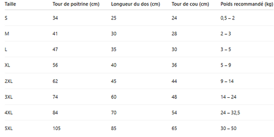 Disponible de la taille S à 5XL, il s’adapte aux chiens de 2 à 100 kg.