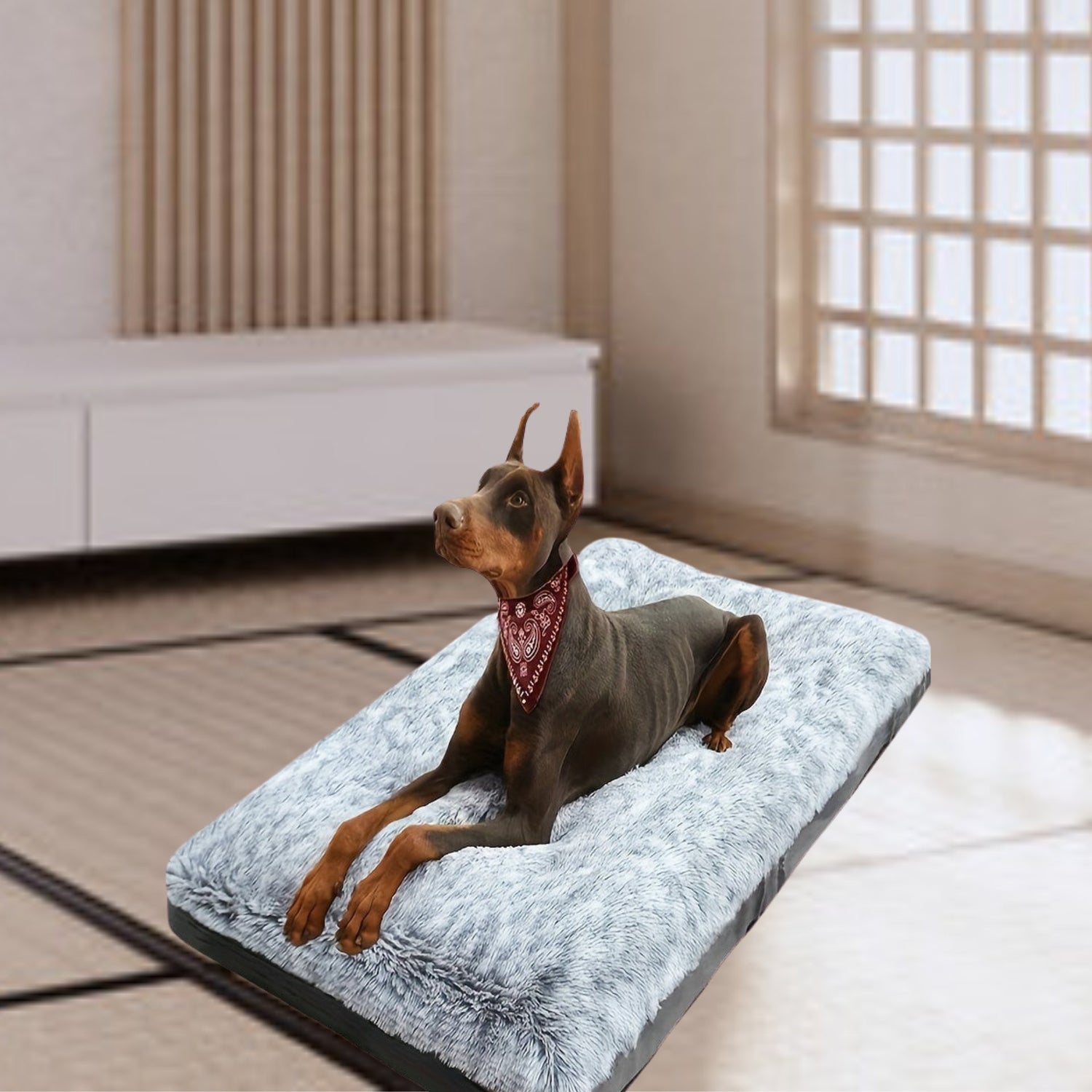 Ce lit orthopédique pour chien en fausse fourrure grise est doux, anti-glisse, et parfait pour l’hiver. Idéal pour grands chiens : confort, maintien et chaleur assurés.