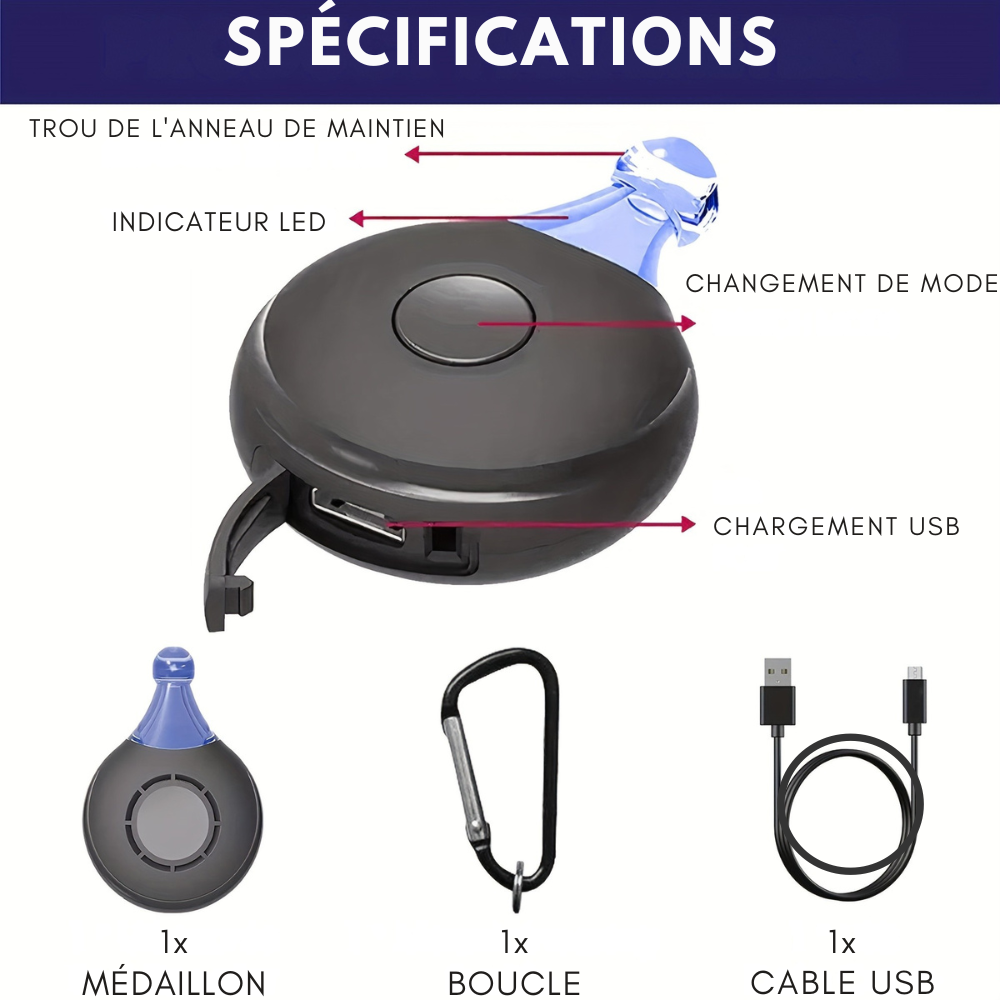 Médaillon Répulsif Ultrason Rechargeable pour Collier Chien