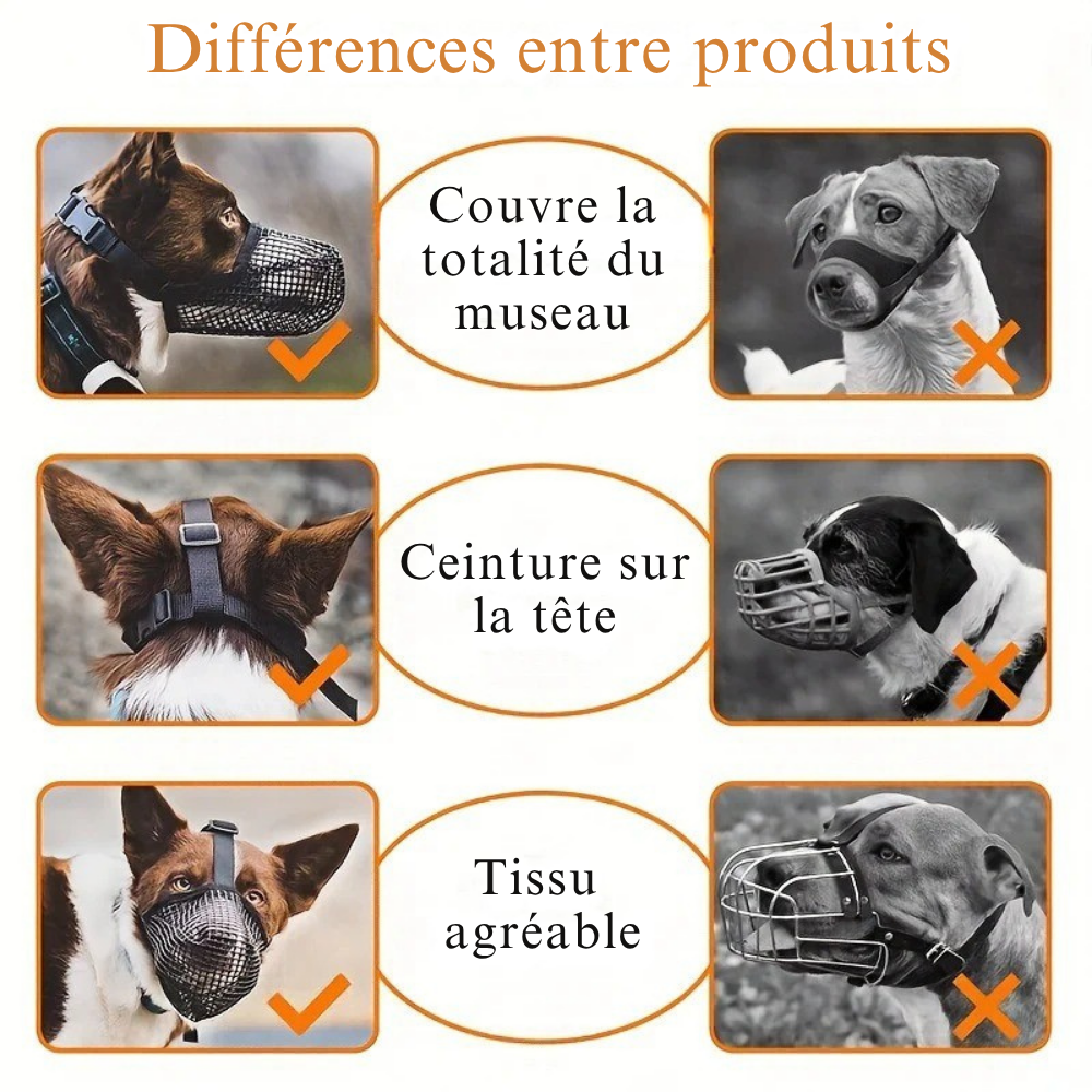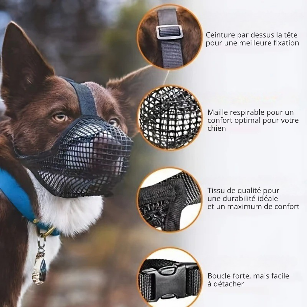 La Muselière Souple en Maille Réglable pour Chien protège sans gêner.