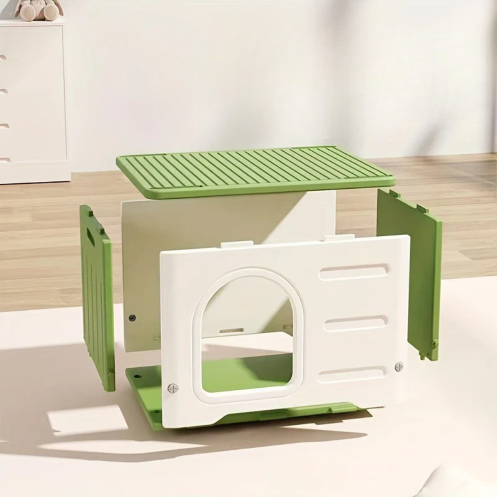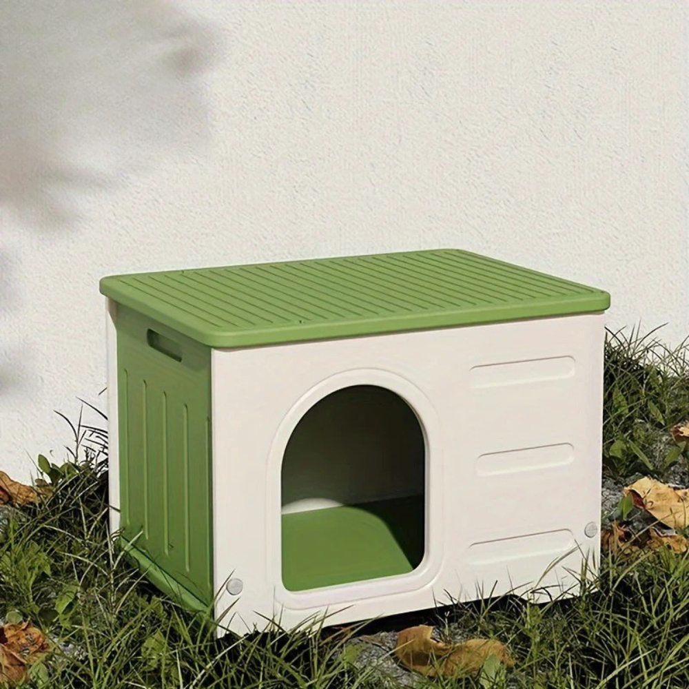 Niche pour petit chien ou chat en plastique démontable, au design compact, avec portes sécurisées et toit amovible. Idéale pour une utilisation intérieure toute l’année.