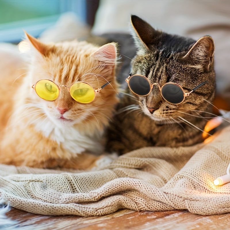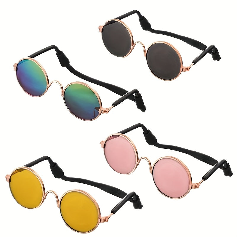 Pack 4 Paires de Lunettes Rétro Rondes en Métal pour Chats et Petits Chiens
