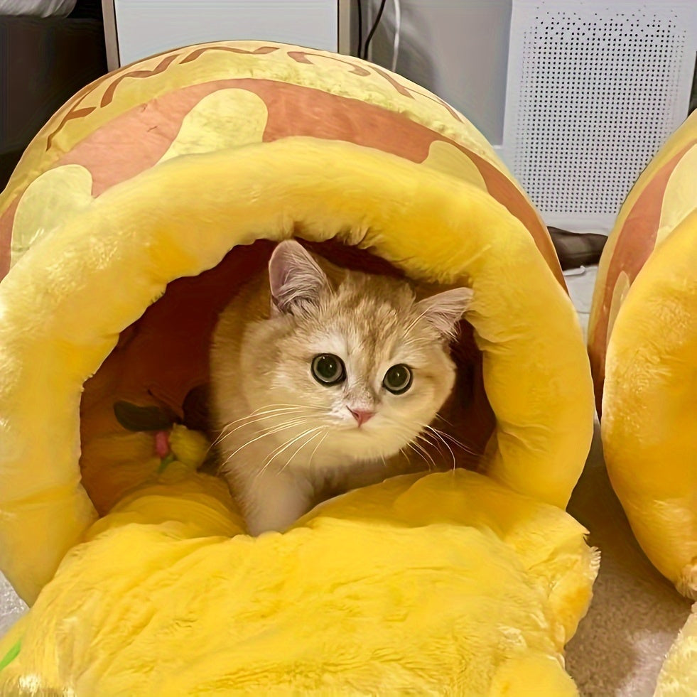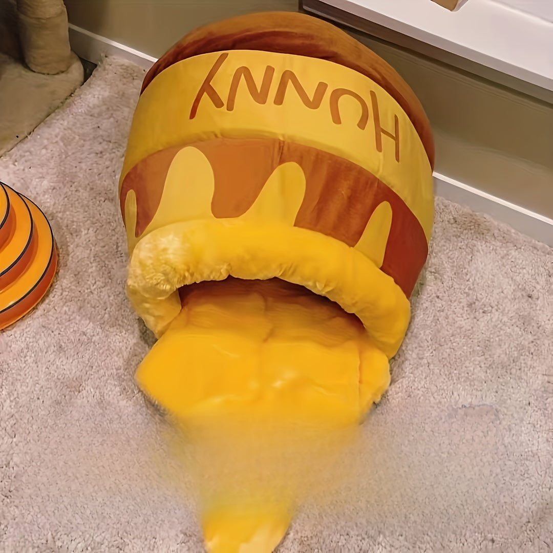 Offrez à votre chat un panier en peluche en forme de pot de miel, doux et chaleureux, idéal pour se cacher, jouer et dormir confortablement.
