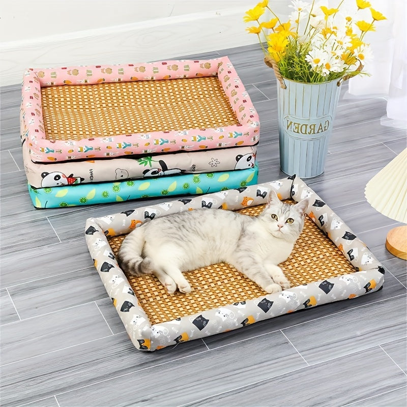 Panier Rafraîchissant Tressé Été Imprimé Cartoon pour Chien et Chat