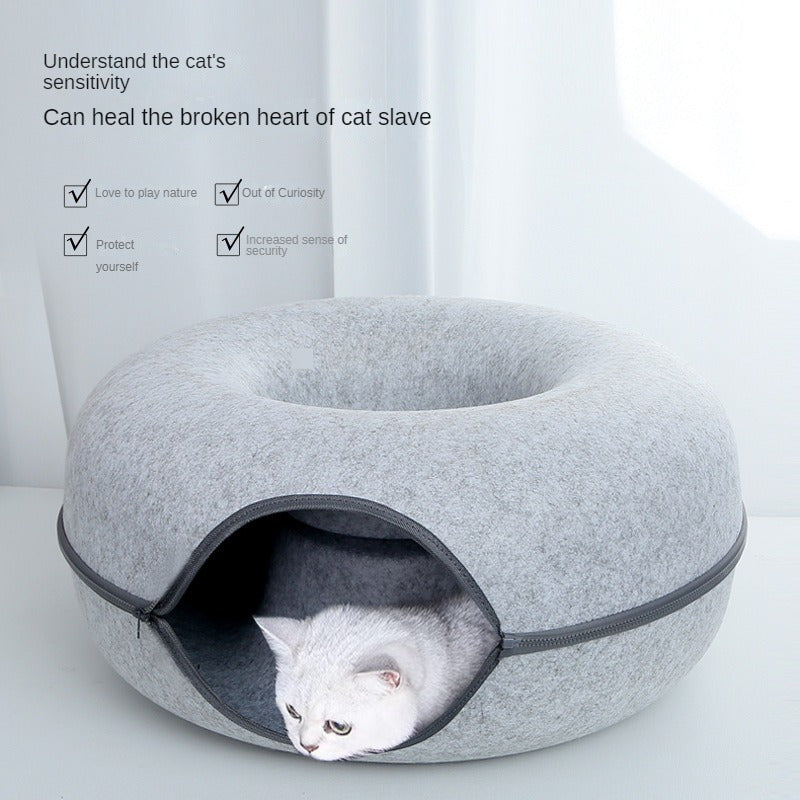 Panier Tunnel en Feutre pour Chats – Double Niveau