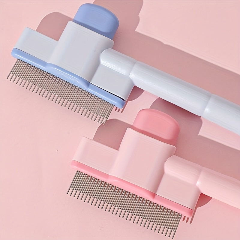Peigne de toilettage auto-nettoyant pour chiens et chats, idéale contre les nœuds, puces et poils morts. Confort maximal grâce à ses dents fines et arrondies.