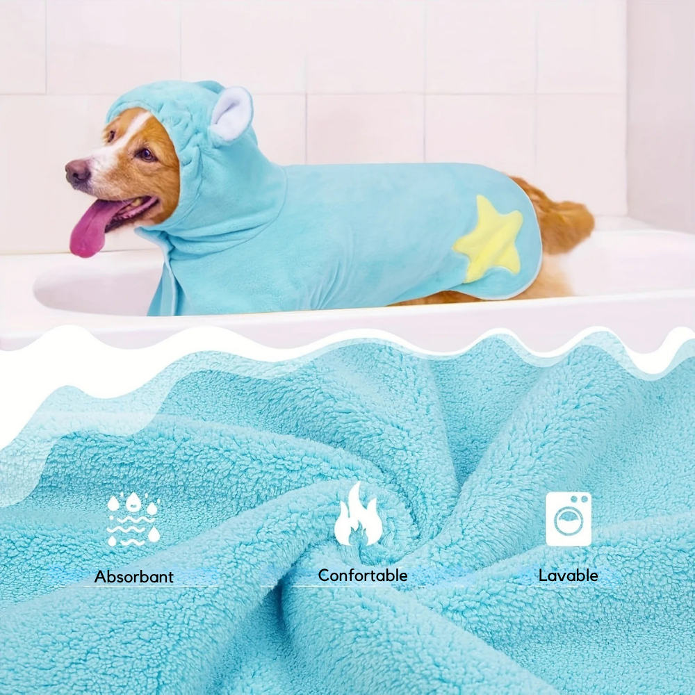 Ce Peignoir de Bain à Capuche avec Oreilles pour Chien transforme chaque sortie de bain en moment câlin.