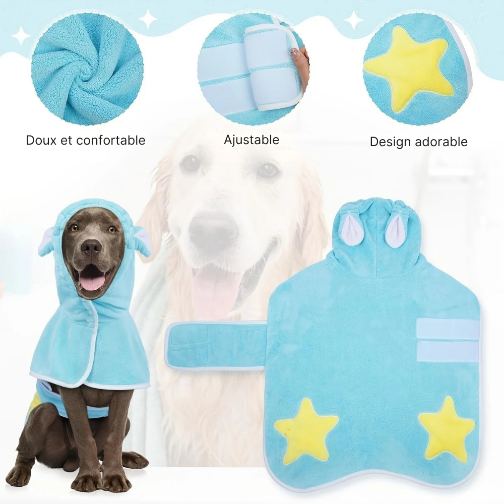 Votre compagnon reste au chaud et protégé après la douche ou la pluie.
