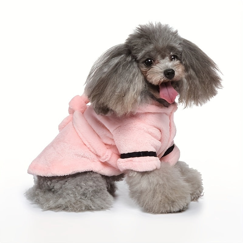 Peignoir de bain pour chien en tissu absorbant rose doux, idéal après le bain. Léger, confortable et mignon avec capuche. Serviette séchage rapide chien.