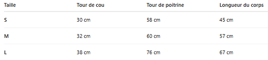 - Dimensions : Disponible en tailles S à XL selon la taille du chien