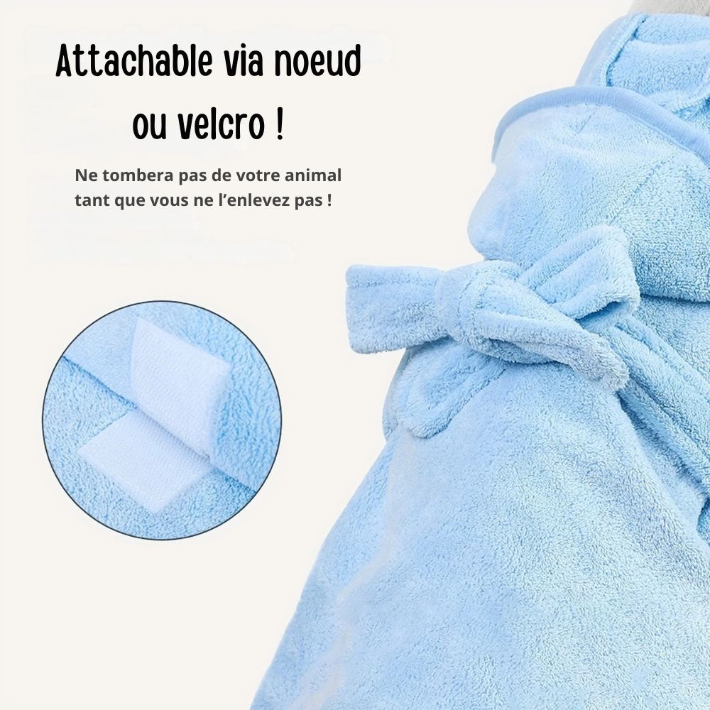 Peignoir Éponge Douce pour Chiens et Chats, ultra-absorbant et confortable, parfait après le bain. Fermeture sécurisée et design tout doux. Lavable à la main ou en machine.
