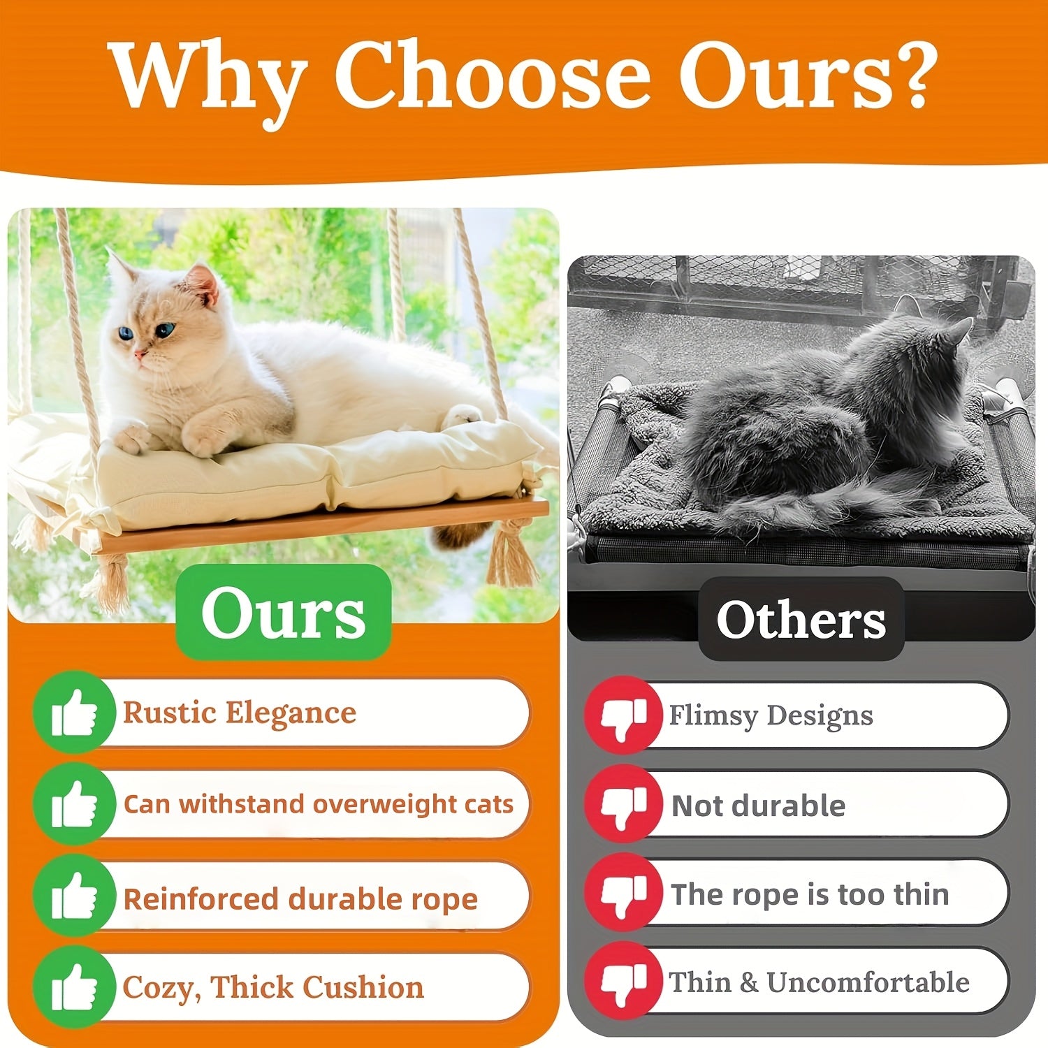 Offrez à votre chat un lit de fenêtre suspendu en bois solide avec coussin doux. Parfait pour se détendre au soleil et observer l’extérieur.