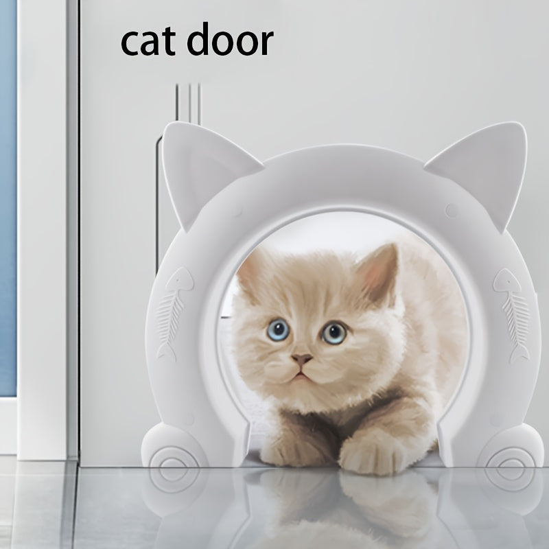 Cette porte pour animaux se distingue par sa forme arrondie et ses oreilles de chat décoratives.
