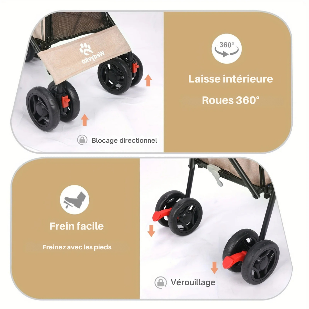 Offrez à votre compagnon un trajet tout en douceur avec la Poussette Animaux Ultra Légère Pliable Beige. Légère, pliable et équipée de roues pivotantes, elle se faufile partout sans effort.