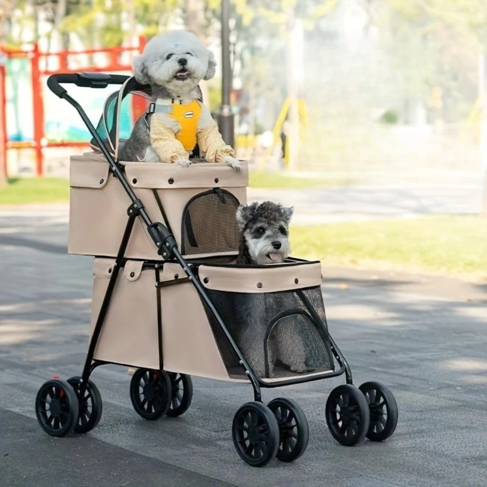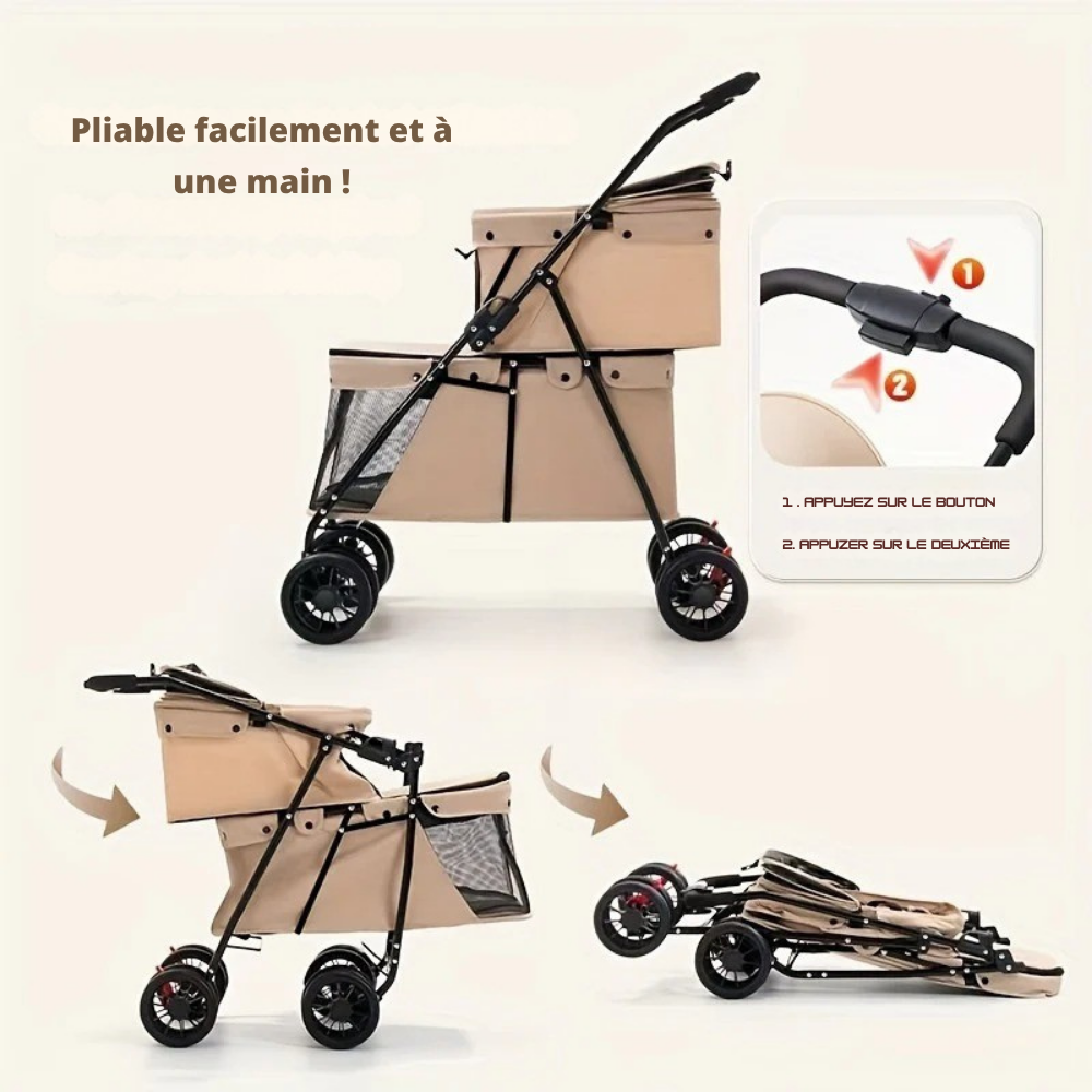 Poussette Double Pliable pour Chiens et Chats – Confort à Deux Étages