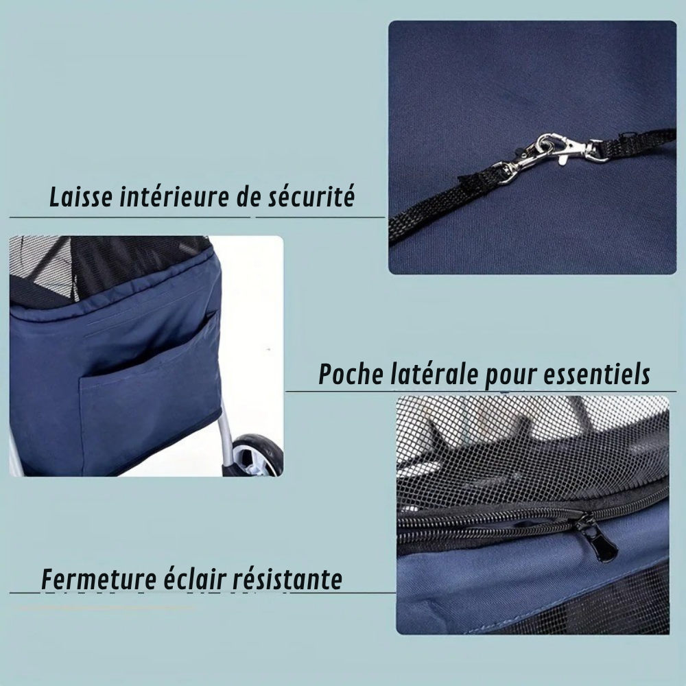 La Poussette Pliable pour Chiens et Chats assure une aération optimale avec ses filets résistants sur tous les côtés.