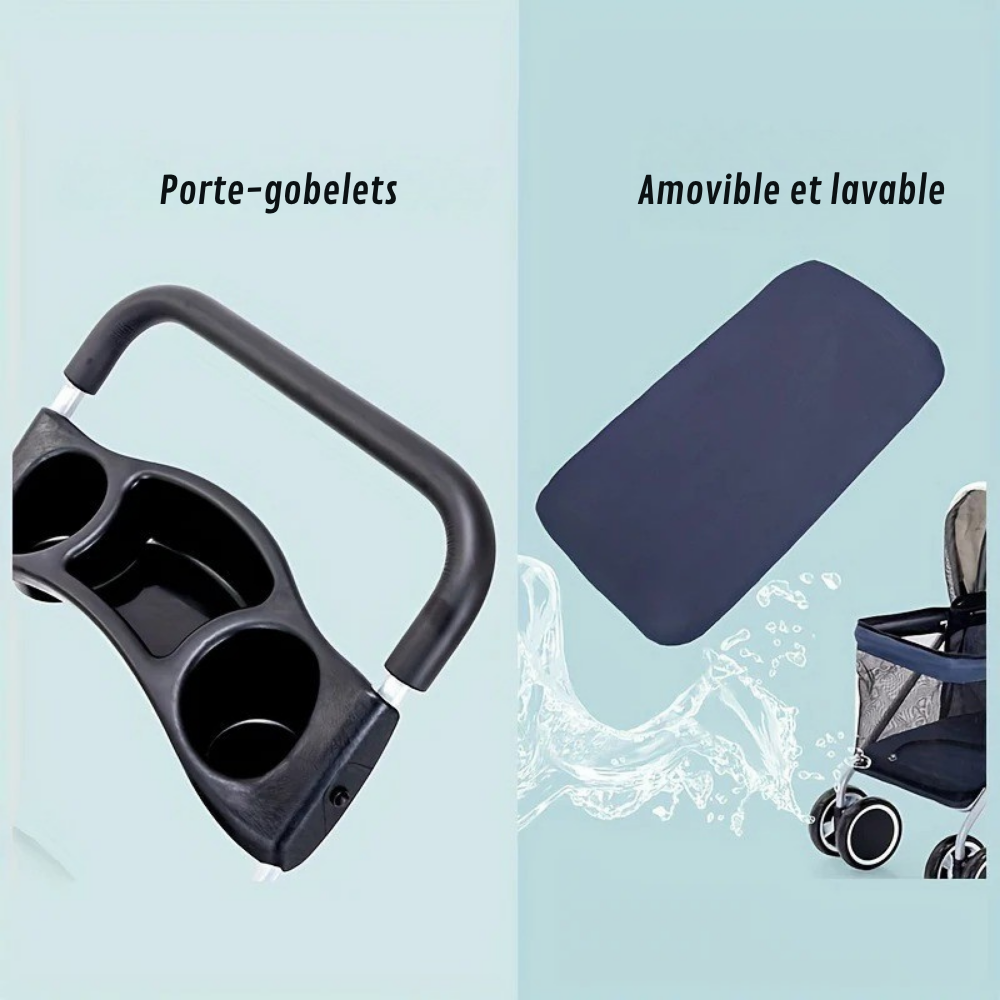 La Poussette Pliable pour Chiens et Chats se replie facilement et se range sans encombre.