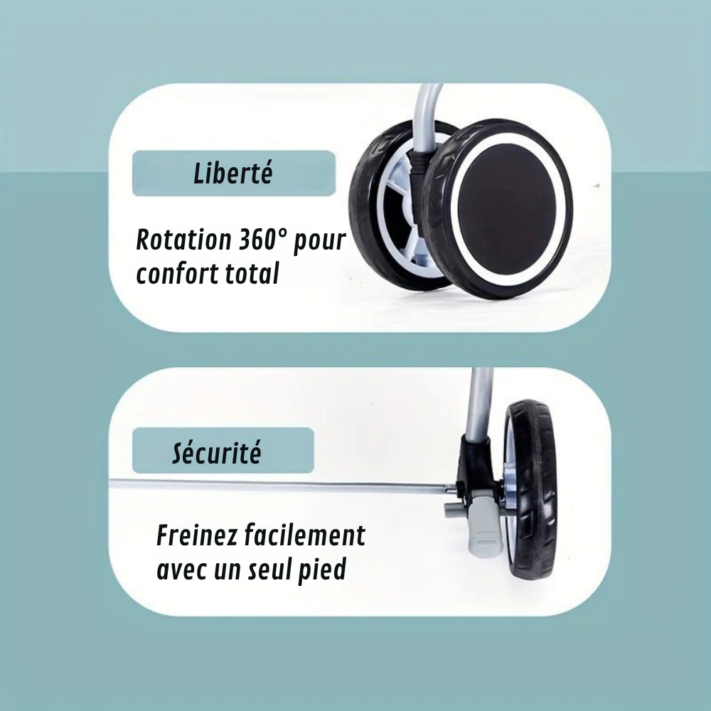 Ses freins arrière et attaches de sécurité internes assurent la stabilité et la tranquillité d’esprit.