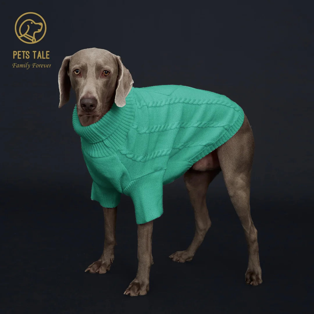 Ce pull pour chien avec manches présente un motif à torsades élégantes et un col montant côtelé, parfait pour les journées fraîches.