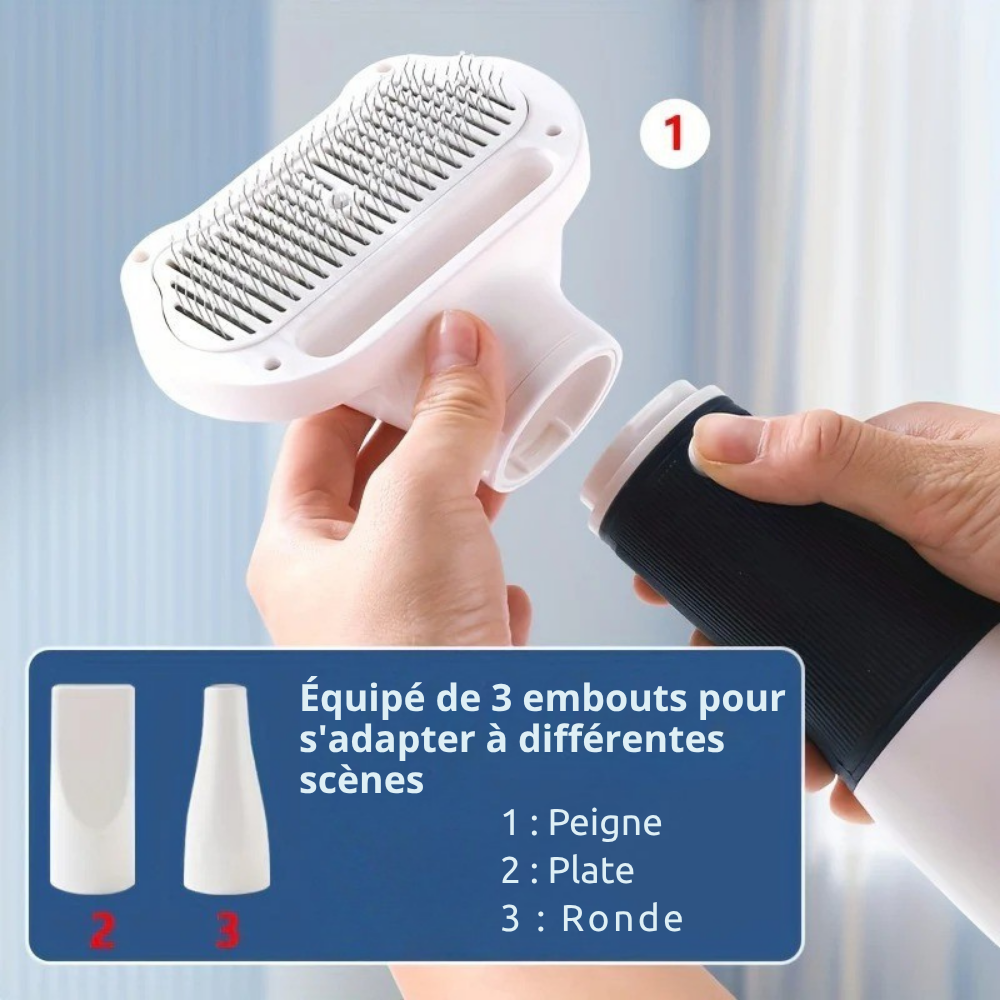 Pulseur Brosse 3-en-1 pour Chiens et Chats – 3 Vitesses, 3 Modes