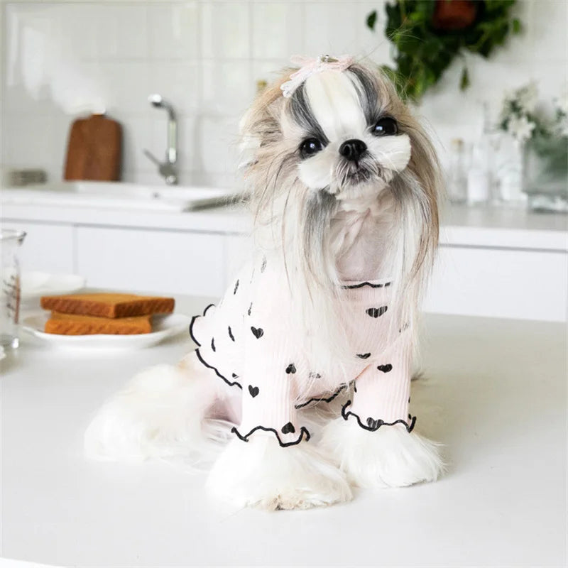 Pyjama Rose à Cœurs Noirs pour Petit Chien