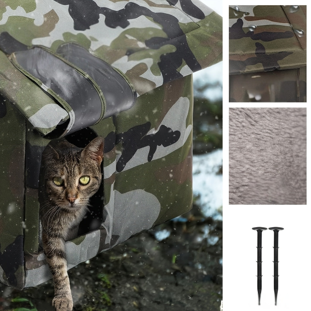 Refuge camo robuste et imperméable pour chats et chiens, facile à monter, isolé pour l’extérieur, idéal pour animaux errants ou domestiques.