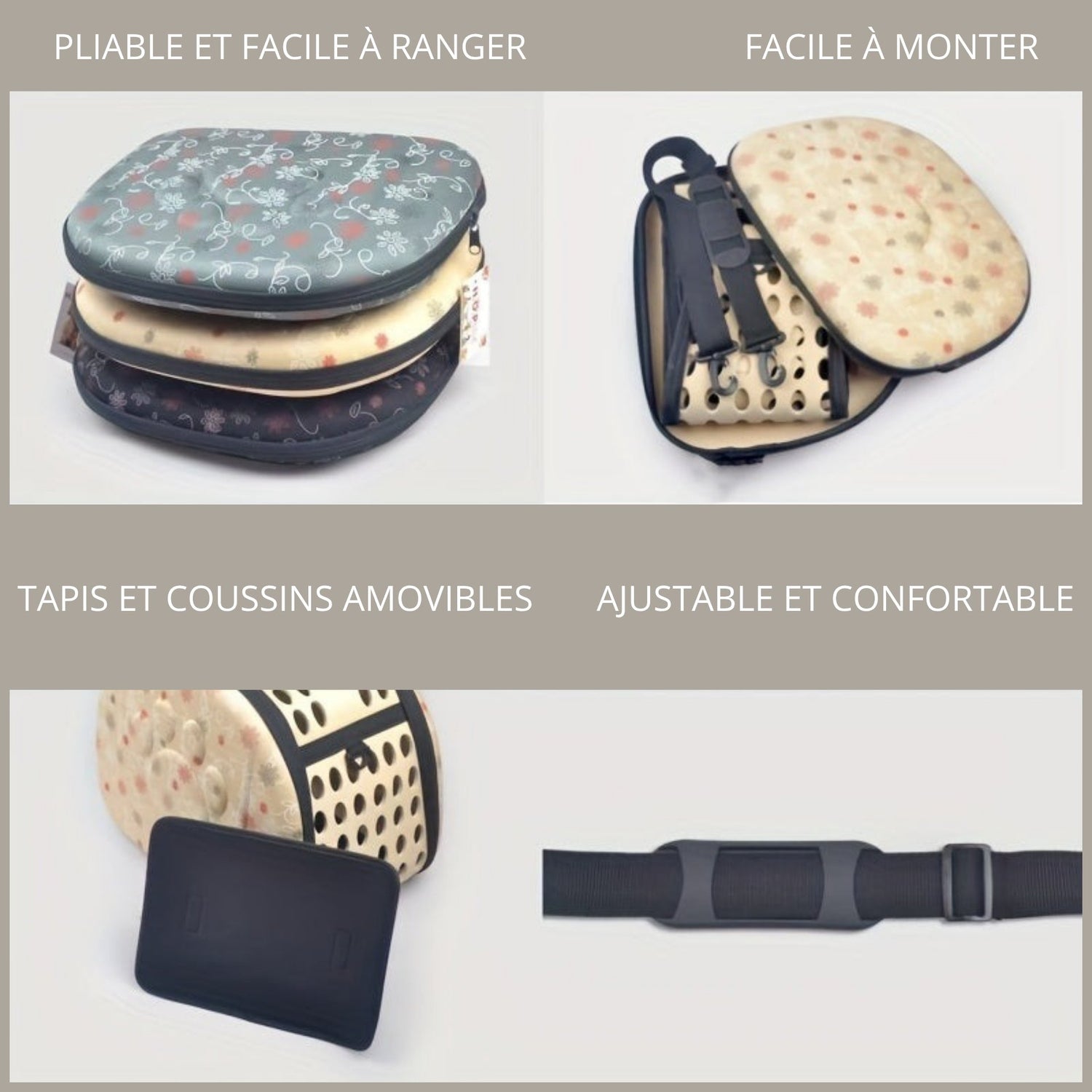 Le Sac Rigide Pliable et Aéré pour Animaux allie confort, aération et structure solide, idéal pour transporter chats ou petits chiens en toute sécurité et légèreté.