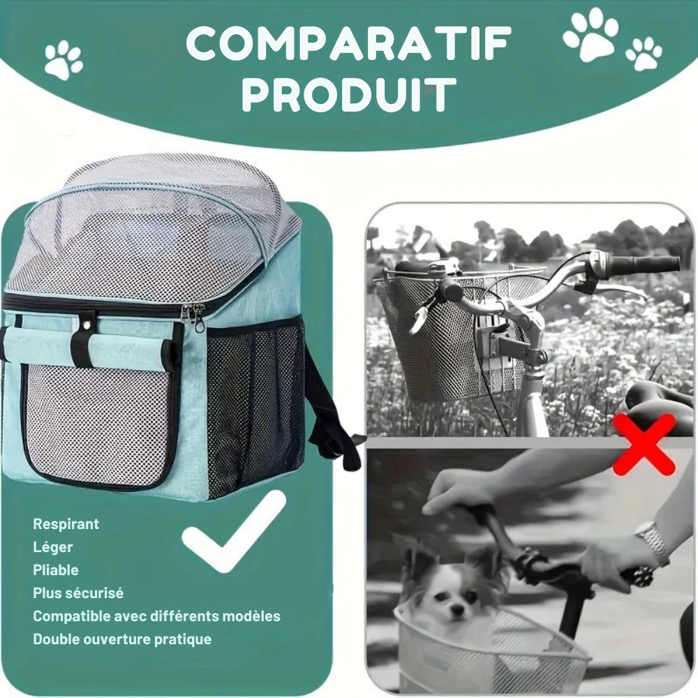 Ce sac de transport vélo arrière est léger, pliable, bien ventilé et compatible avec la plupart des porte-bagages. Idéal pour les chiens et chats en balade !