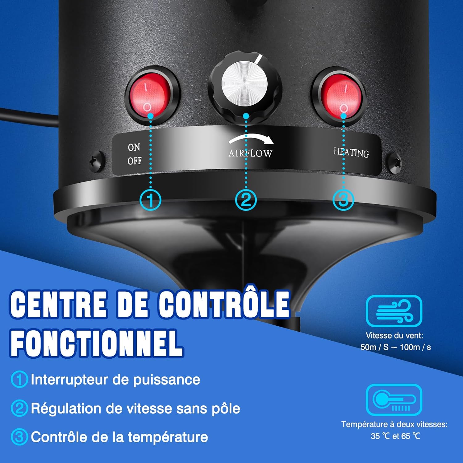 Il convient à tous les types de poils grâce à son soufflage réglable et ses 4 embouts.