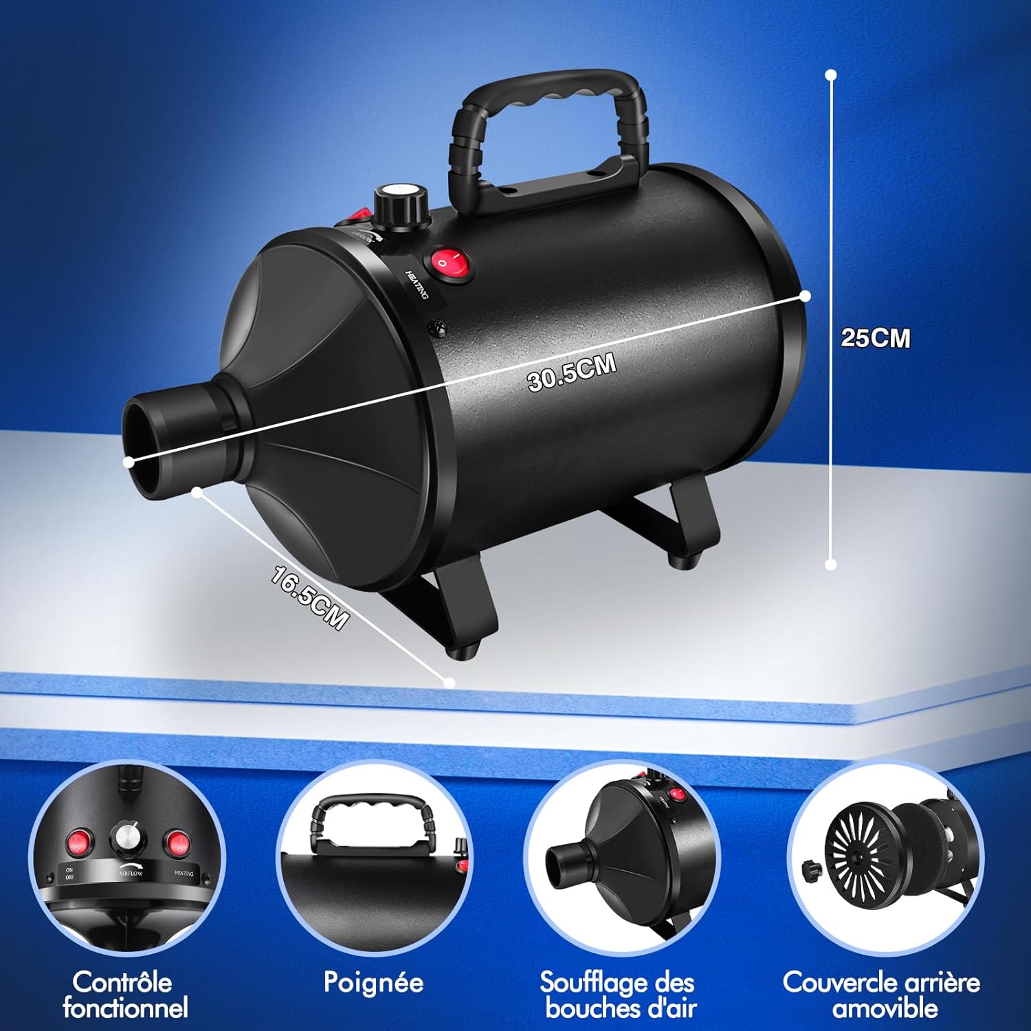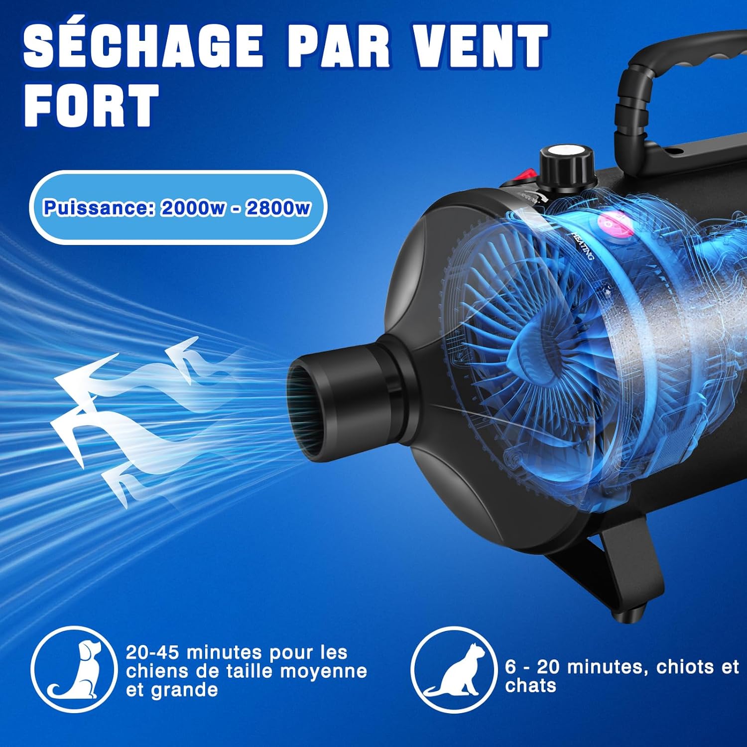 Ce pulseur pour animaux 2800W offre une performance idéale pour un usage domestique.